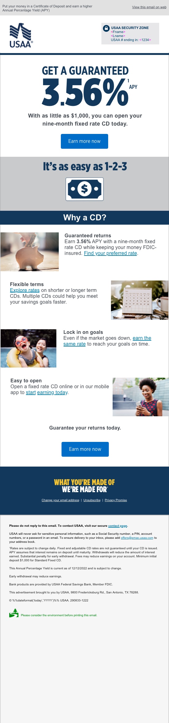In early 2022, I wrote an email to generate demand for Certificates of Deposit at USAA. Unbeknownst to me, it had become the “champion” their internal team had tried to beat every month since.