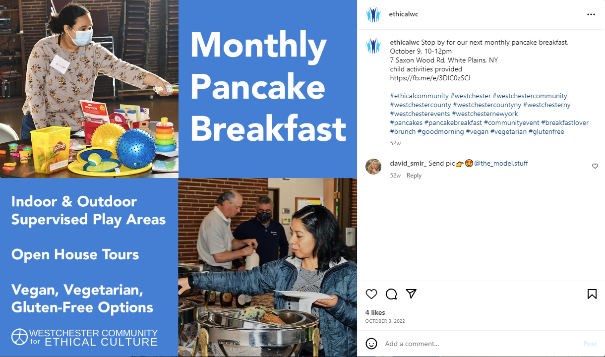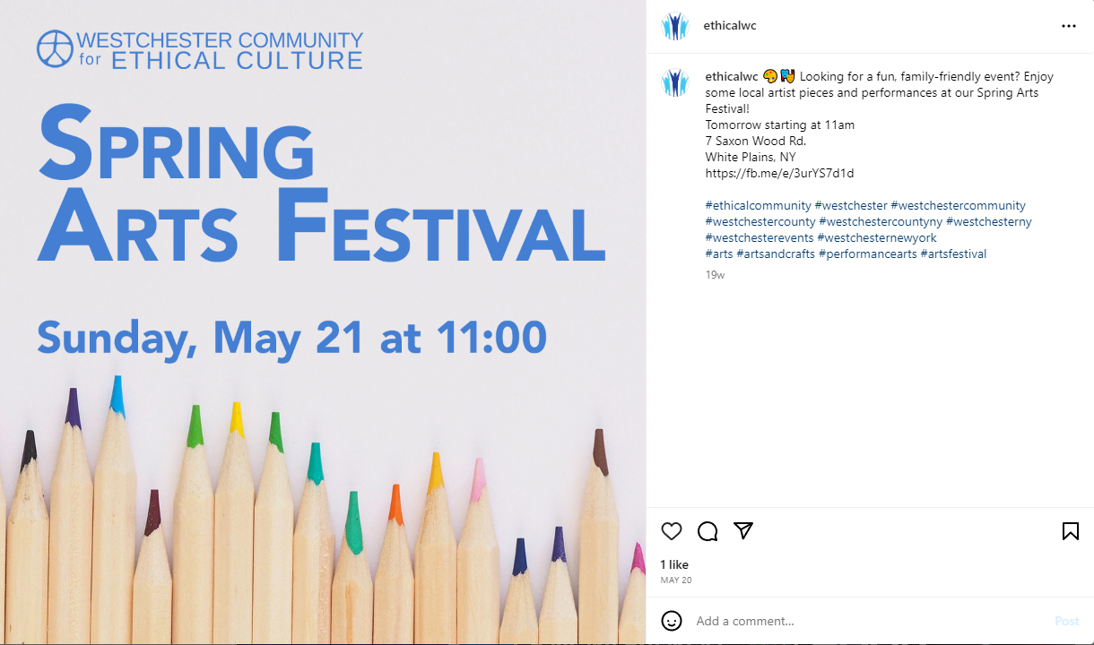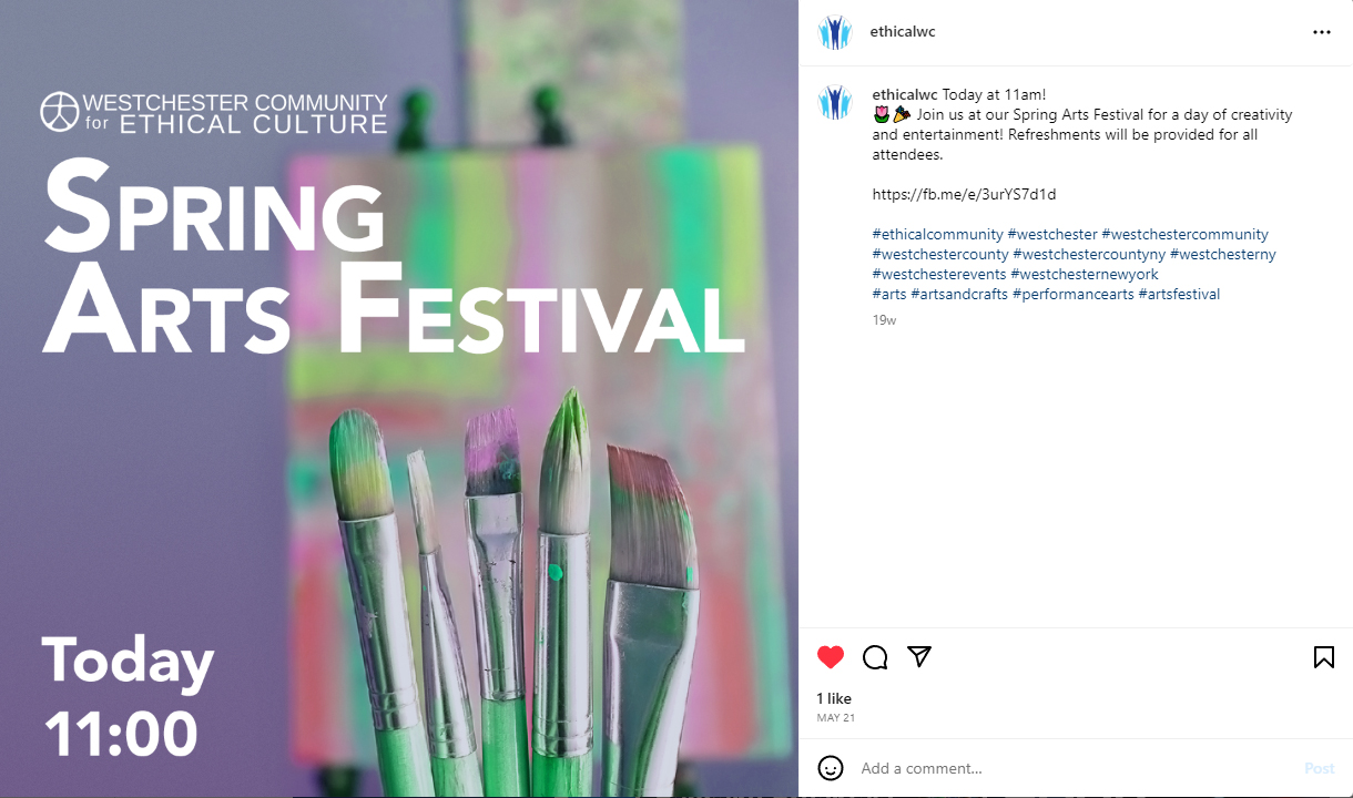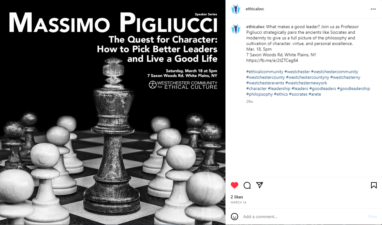 Helping the Westchester Ethical Society promote their events to better the world.