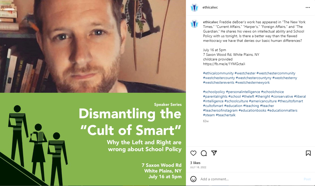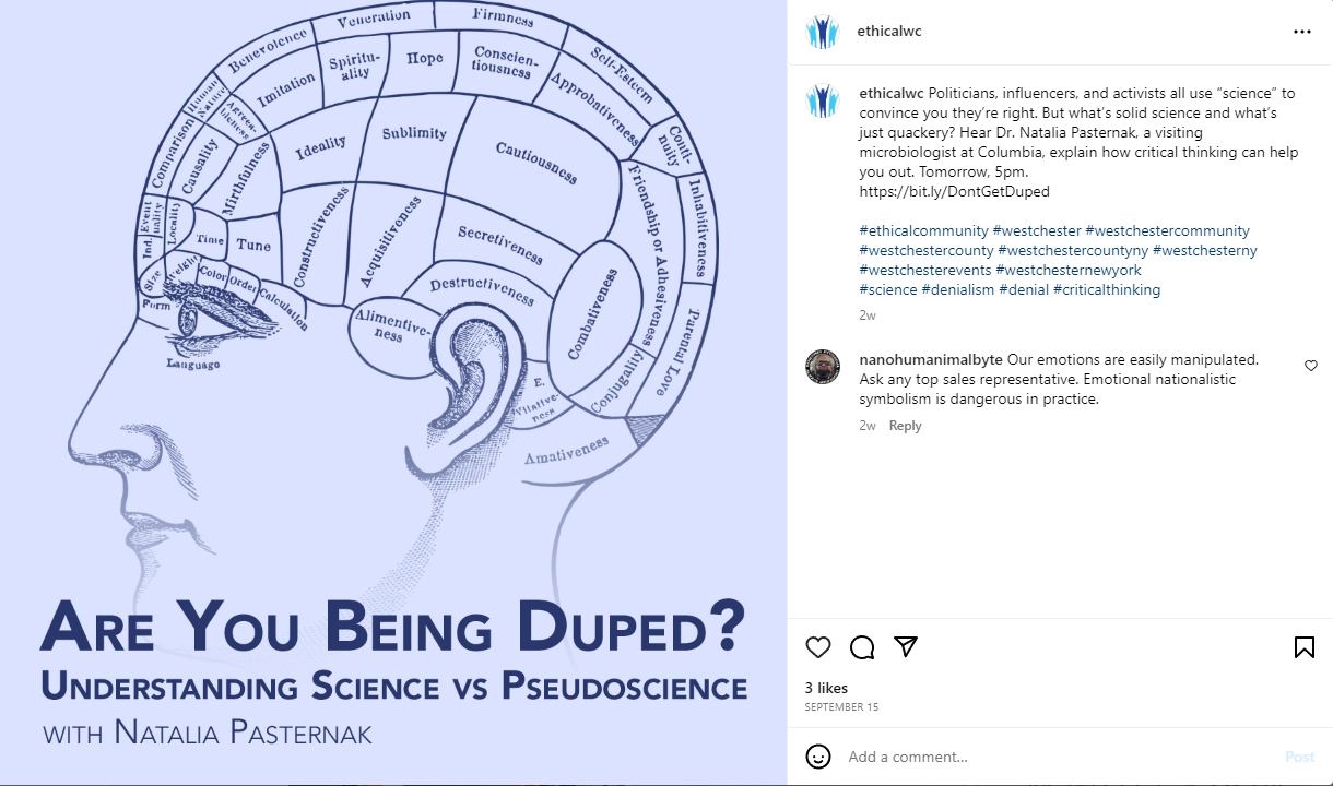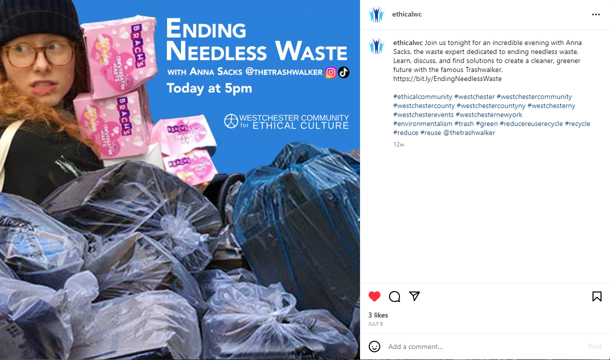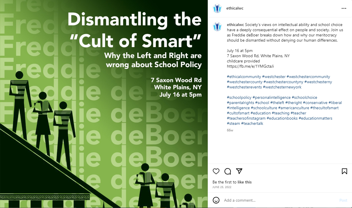 Helping the Westchester Ethical Society promote their events to better the world.